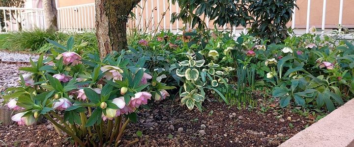 少し前の写真ですが、クリスマスローズです。植えてから 10 年ほど経ちますが、こぼれ種でどんどん増えていくくらい強健です。ほぼ放置していますが、毎年、きれいに咲いてくれます。
