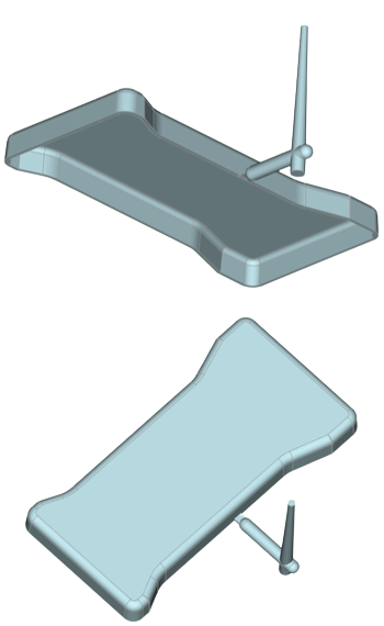 さて、ひとまず完成したプログラムを走らせてみた例をご紹介します。その前に簡単な製品の形状を 3D-CAD で作ってみました。作成にあたっては FreeCAD というオープン・ソース・ソフトウエアを使いました。これまでは SOLIDWORKS を使用してたのですが、FreeCAD での作成は初めてでしたので、単純形状の作成といえどもとても時がかかってしまいました。SOLIDWORKS なら 20 分程度で出来るものが、一週間以上もかかってしまいました。慣れれば短縮できるとは思いますが、なんだか痒いところに手が届かない感じはします。右図にその形状を示します。