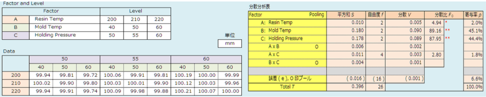 By the way, the Excel sheet that outputs part dimensions can also calculate the part cost. Various discussions, such as how to set optimal molding conditions while keeping costs low, would be interesting. For ANOVA, I recommend that you create a sheet so that you can input Excel formulas and perform calculations yourself, rather than using Excel's functions or commercially available software. This will lead to a better understanding.